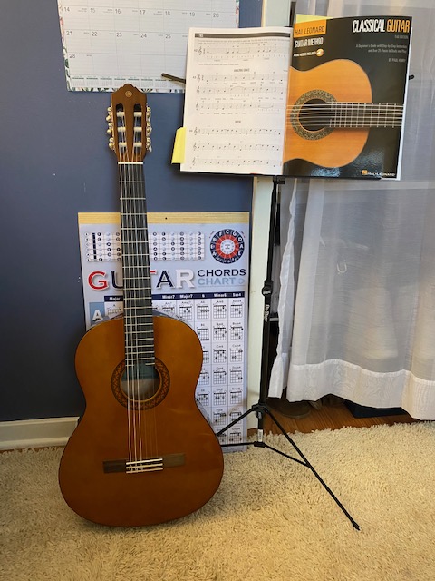 Quiet, candles, and meditative breathing wasn’t calming me during these difficult times (and animal rescue videos, while helpful, only get me so far). I needed something more – if even for a few minutes every day – to challenge my brain to think in the opposite of crisis and uncertainty. That’s why, in the middle of a sleepless night, I bought a guitar.