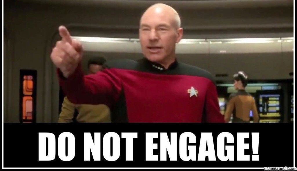 If this happens to you, don’t be like Captain Picard! Do not engage! Find a way to leave that baggage behind. Dump coffee grounds on it if you’re tempted to dig it up and eat it again. No one is worth your self-worth, and remember, no one can drag you back into their pain or regret without your permission.