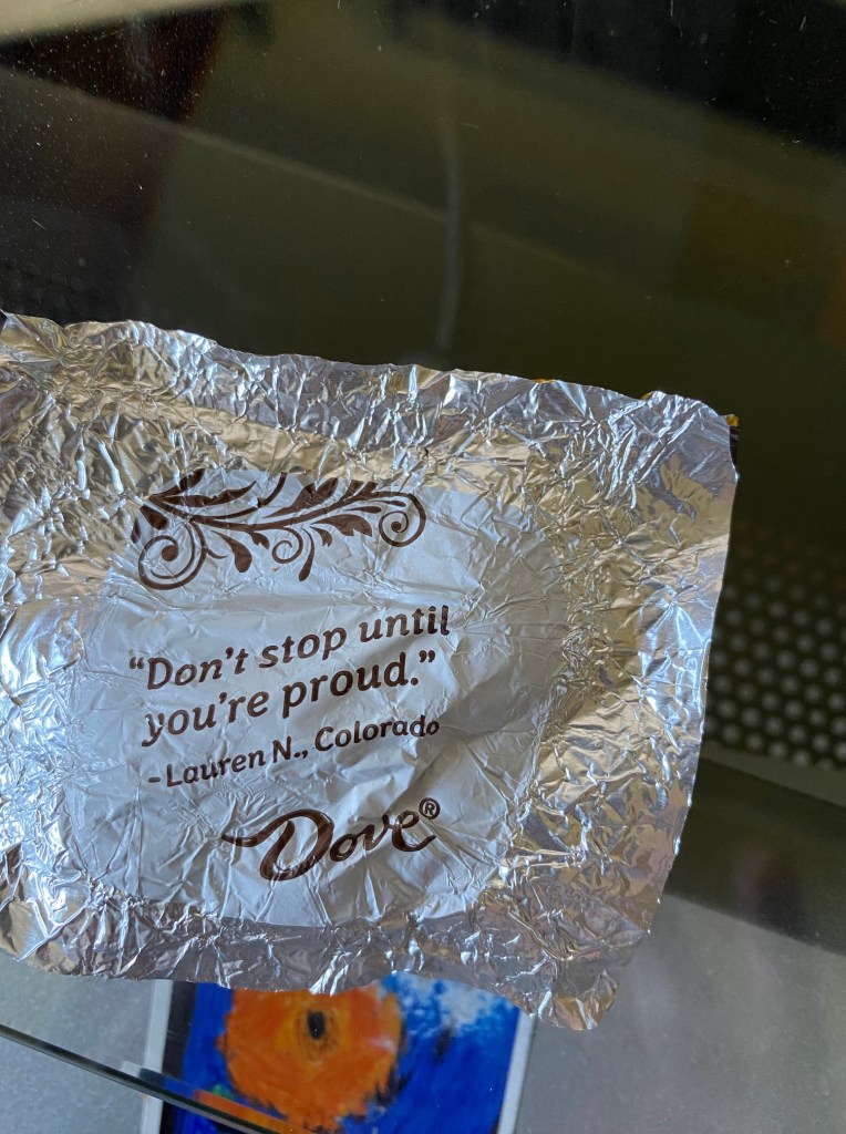 I just ate another Dove (for which I’m neither proud or feeling guilty), and this message made me smile: