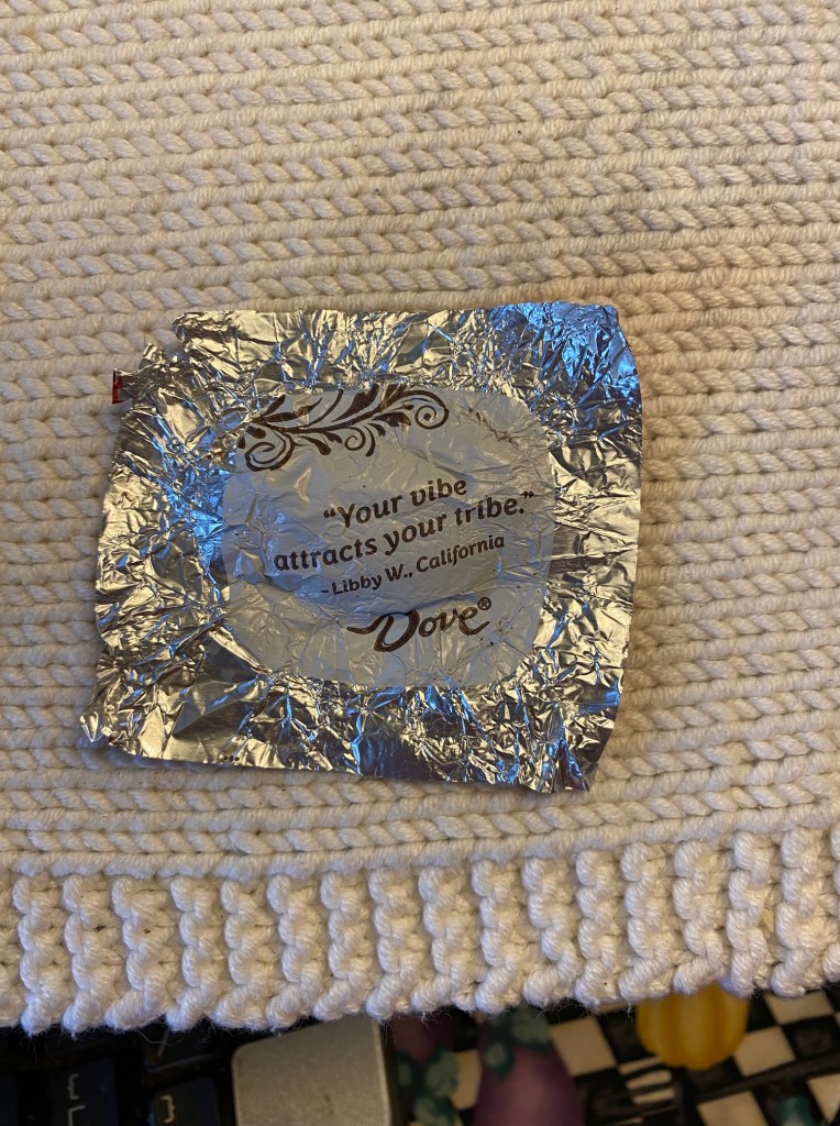 (I didn’t know Dove wrappers were fortune cookies, and now I’m hungry for Chinese takeout.)