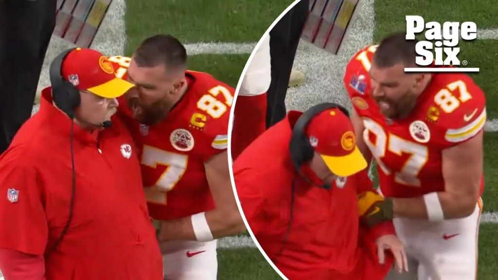 The minute I saw it, I froze. The way Travis Kelce leaned into his coach. The “Why I oughta!” look on his face. The spit, the sweat.
